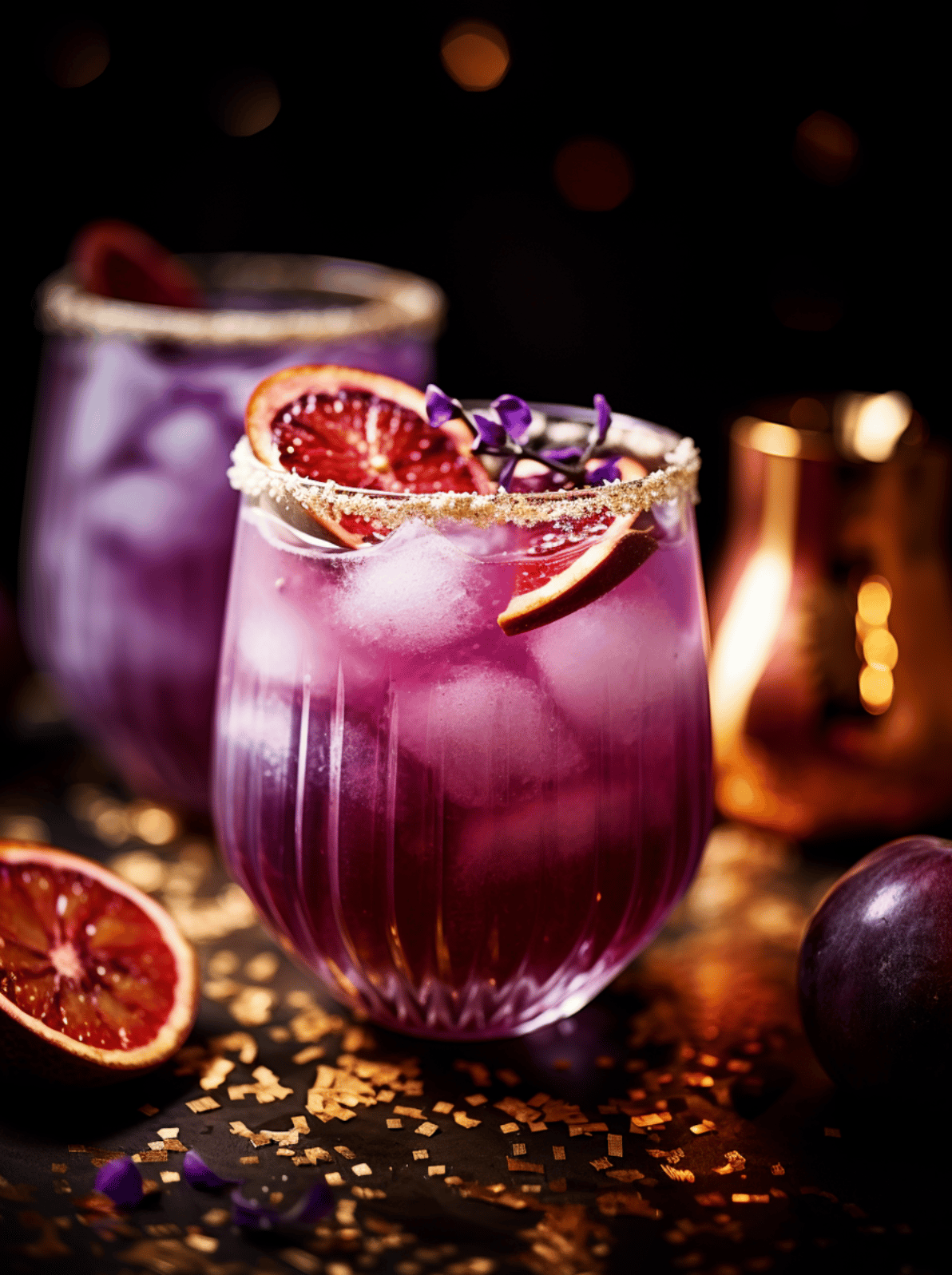 In the heart of this magical mix lies a Pinot Noir, selected for its rich color and berry undertones, cradling the essence of a sugarplum without stealing the spotlight. For the merrymaking fairies who favor a sober flight, a non-alcoholic red wine alternative plays a harmonious melody with the same passionate notes. Edible gold glitter, or its more accessible twin—turmeric sugar—brings the spirit of opulence to each glass, elevating a simple beverage into a centerpiece. Blood oranges and figs not only ornament your drink with regal purple and crimson, but they're also full of antioxidants and fiber, making this sangria a toast to your health as much as your taste buds.